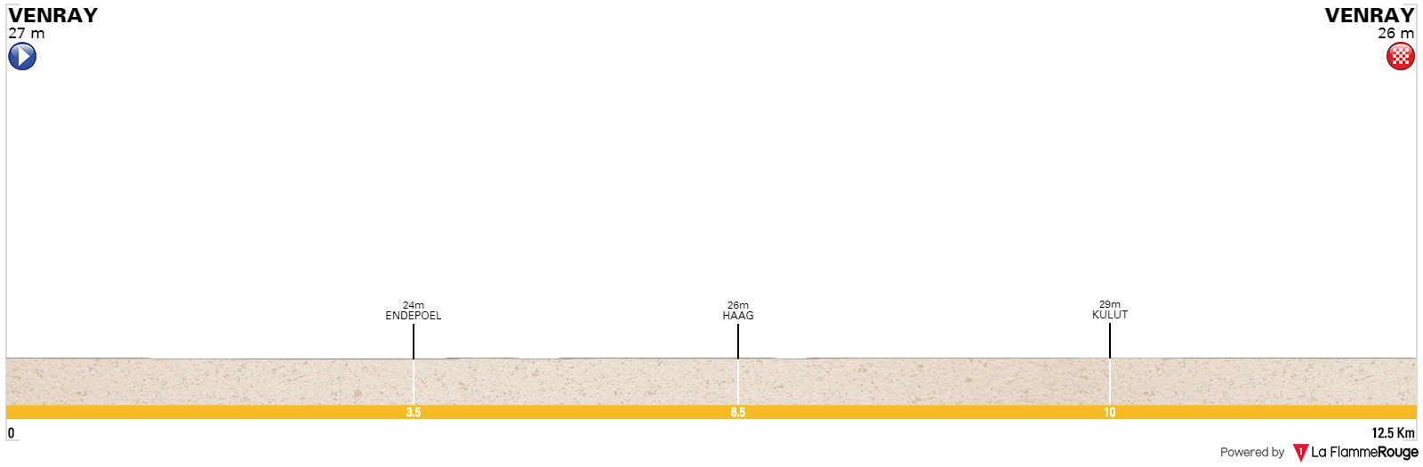 Tracée autour de Venray sur une distance de 12.5 kilomètres, le contre-la-montre individuel du Binck Bank Tour devrait permettre d'établir une première hiérarchie entre les candidats à la victoire finale. Dépourvu de difficultés, ce dernier devrait également sourire aux spécialistes de la discipline.