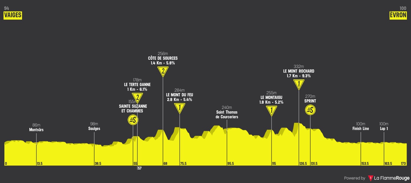 Tracée entre Vaiges et Évron sur une distance de 173 kilomètres, la 2ème étape des Boucles de la Mayenne devrait logiquement revenir à un sprinter d'autant plus que pour ces derniers, l'enjeu sera également de grappiller quelques secondes de bonification pour se rapprocher de la tête du classement général.