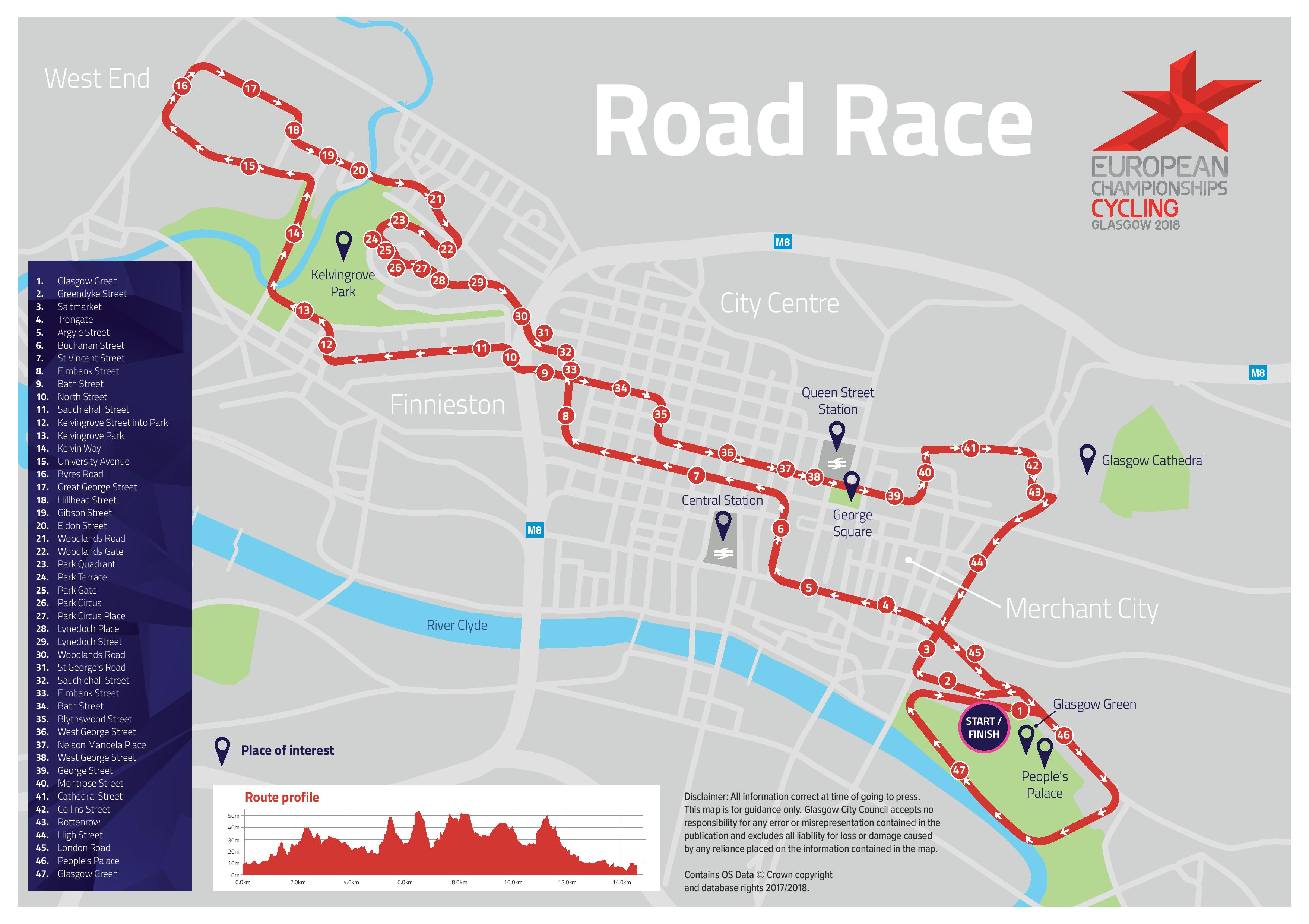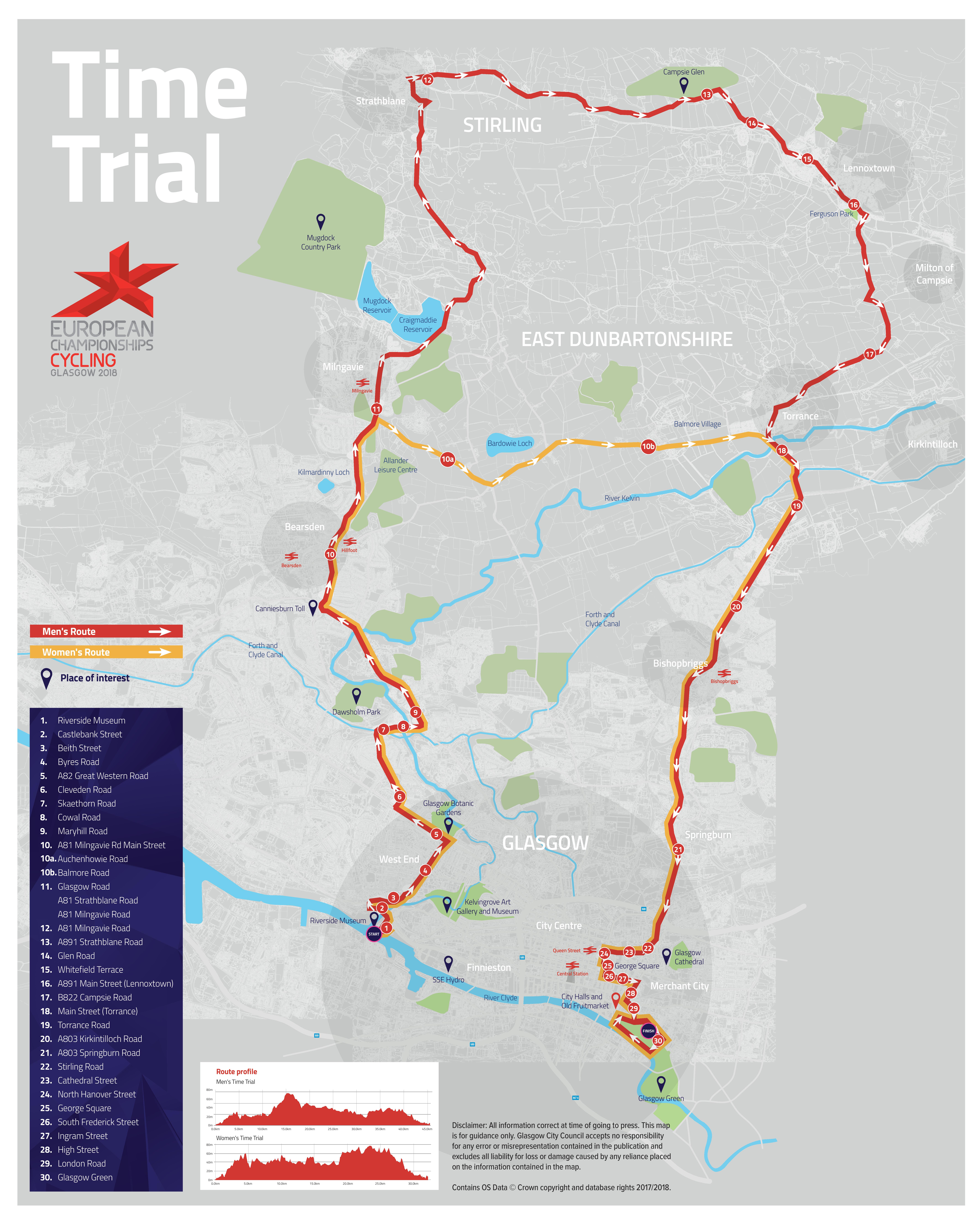 L'Union Européenne de Cyclisme a dévoilé ce mardi le parcours du chrono et de la course en ligne des Championnats d'Europe de cyclisme sur route 2018, qui se dérouleront du 5 au 12 août à Glasgow.