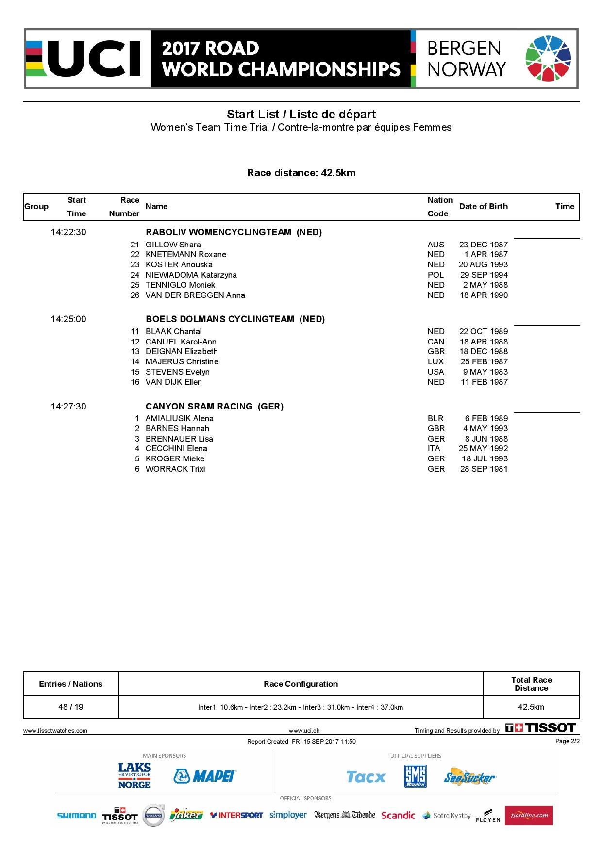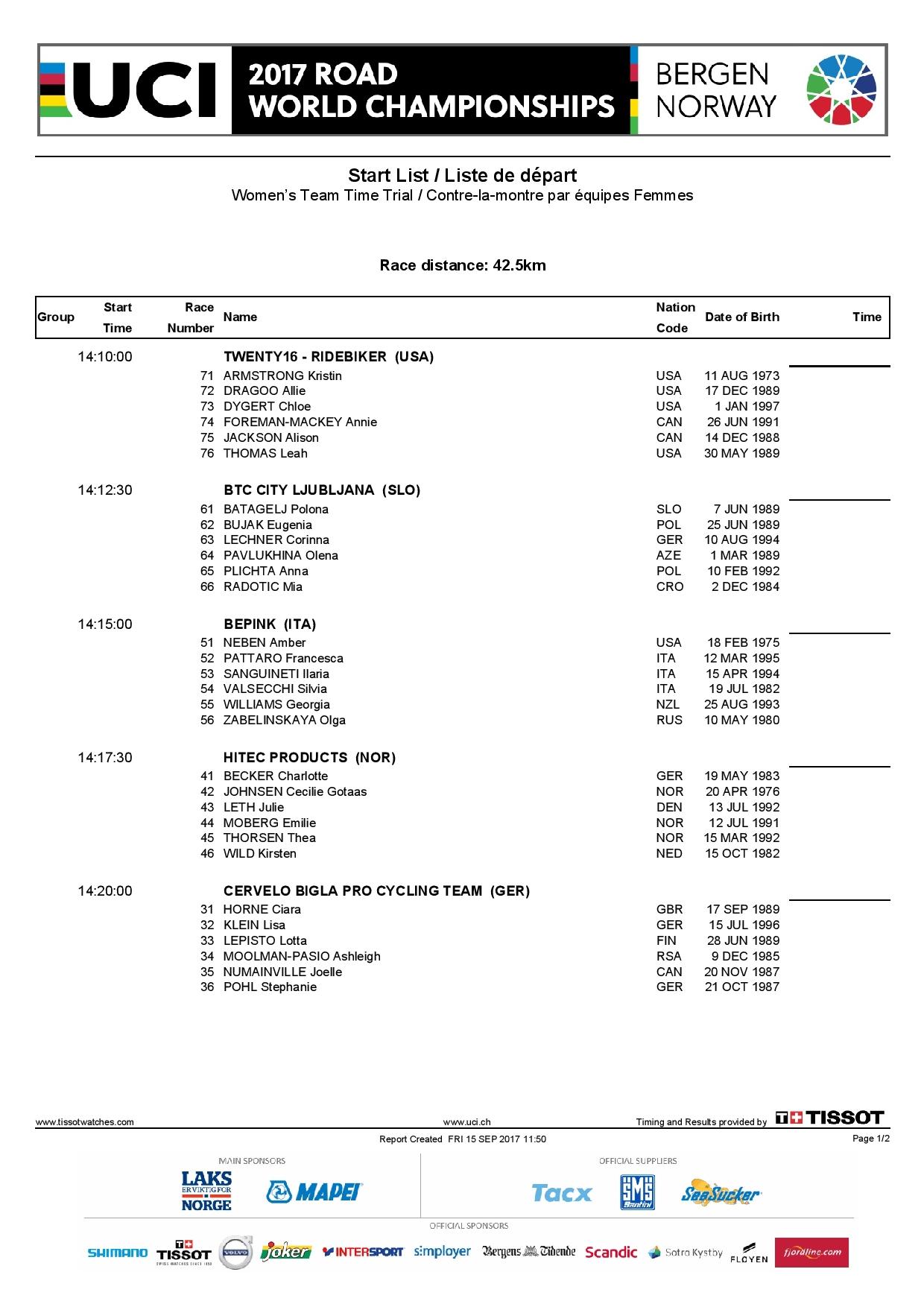 Championnat du Monde : la liste des partantes du chrono par équipes féminin