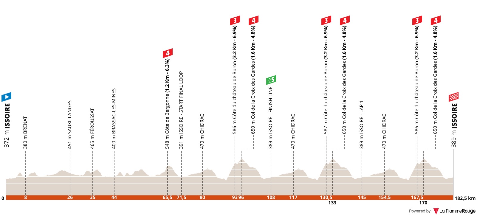 Tracée autour d'Issoire sur une distance de 181.8 kilomètres, la 1ère étape du Critérium du Dauphiné devrait logiquement sourire à un sprinter. Attention toutefois à un final compliqué qui pourrait les mettre en difficulté.