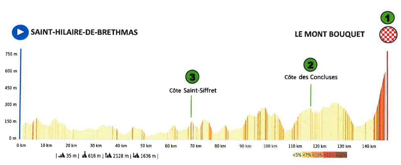 Tracée entre Saint-Hilaire-de-Brethmas et Le Mont Bouquet sur environ 146 kilomètres, la 4ème étape de l'étoile de Bessèges s'annonce passionnante. En effet, l'arrivée au Mont Bouquet devrait de nouveau permettre une belle lutte entre les candidats à la victoire finale. Et pour le leader de la course, le français Benjamin Thomas, tout l'enjeu sera de pouvoir résister aux grimpeurs avant d'aborder le chrono final dimanche.