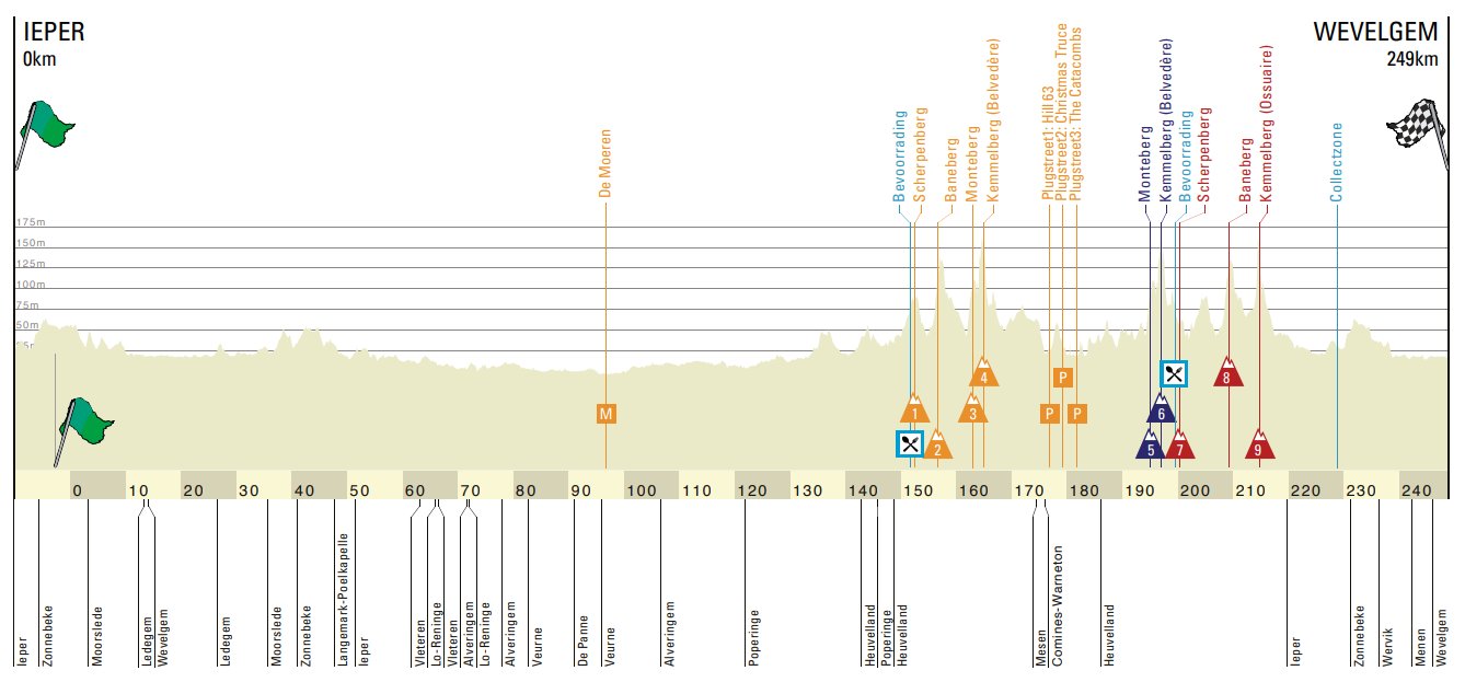 Souvent dévoué aux sprinters, Gand-Wevelgem devrait encore une fois cette année sourire à un homme rapide. En tout cas la balance penche pour ces derniers au vu des conditions météorologiques, puisque ni le vent ni la pluie ne seront de la partie. Idéal donc normalement pour assister à un regroupement après la dernier mont prévu au programme du jour, et situé assez loin de l'arrivée.