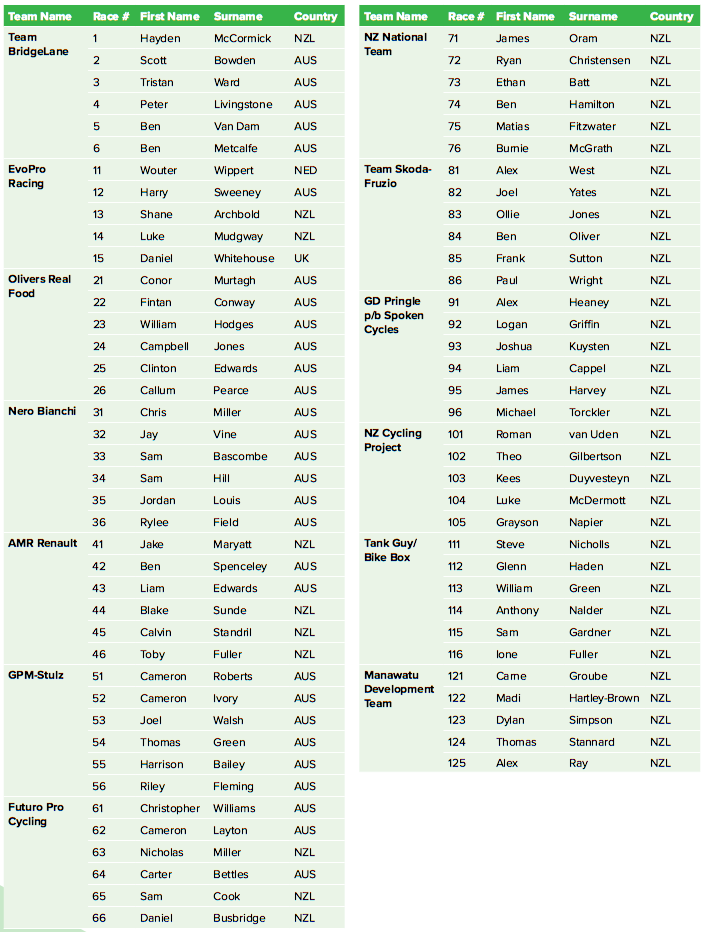 Liste des engagés de la Gravel and Tar 2019 - UCI Oceanie Tour