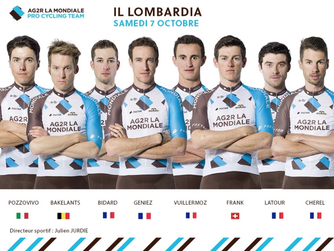 En l'absence de Romain Bardet, qui a mis un terme à sa saison, l'équipe ag2r-la mondiale se présentera au départ du Tour de Lombardie ce samedi avec deux leaders. Alexis Vuilermoz tout d'abord qui a montré depuis quelques semaines qu'il était revenu à son meilleur niveau, mais aussi Domenico Pozzovivo, qui devrait disputer sa dernière course sous les couleurs d'ag2r.