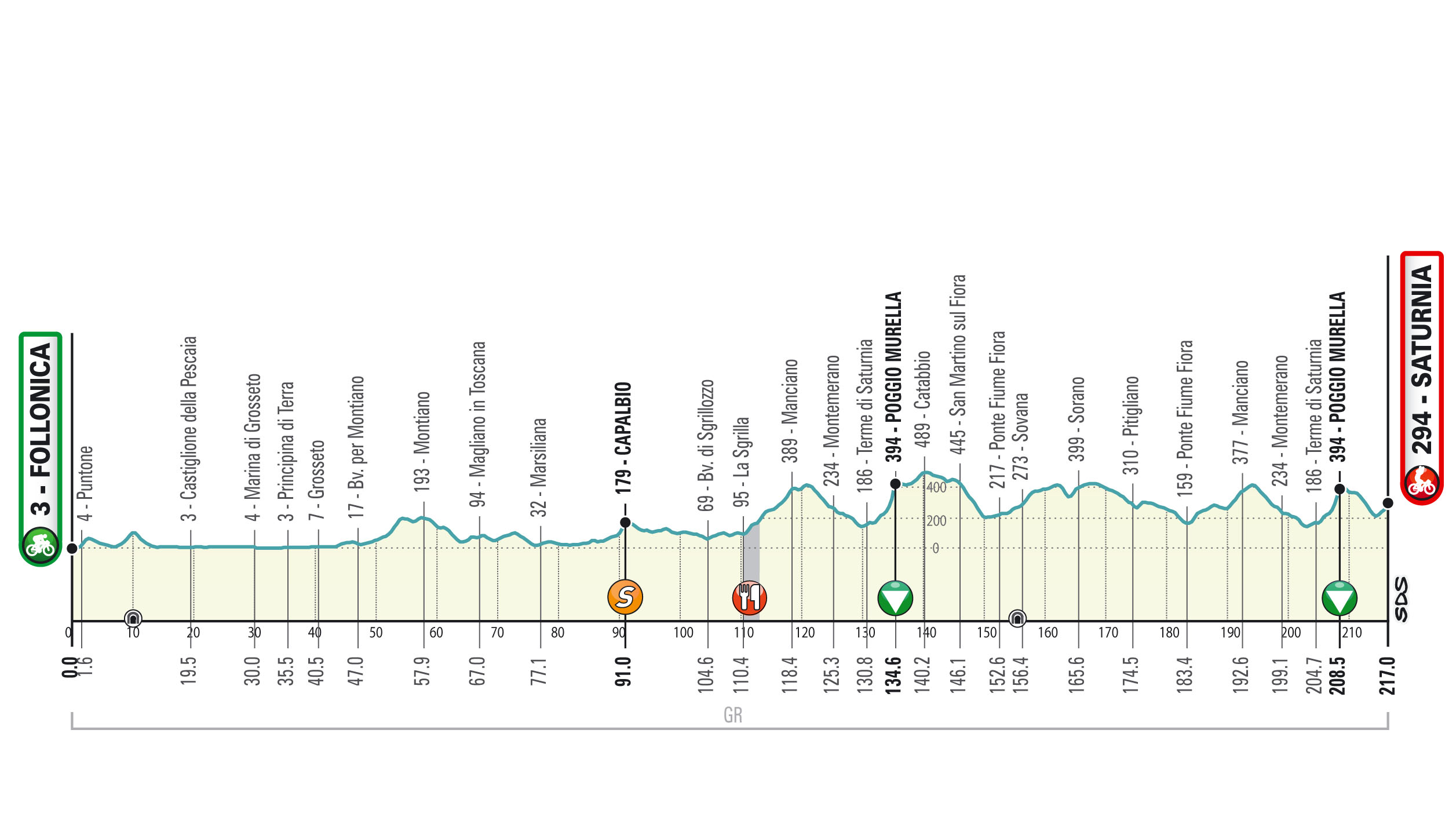Étape 3 - Follonica - Saturnia (217km)