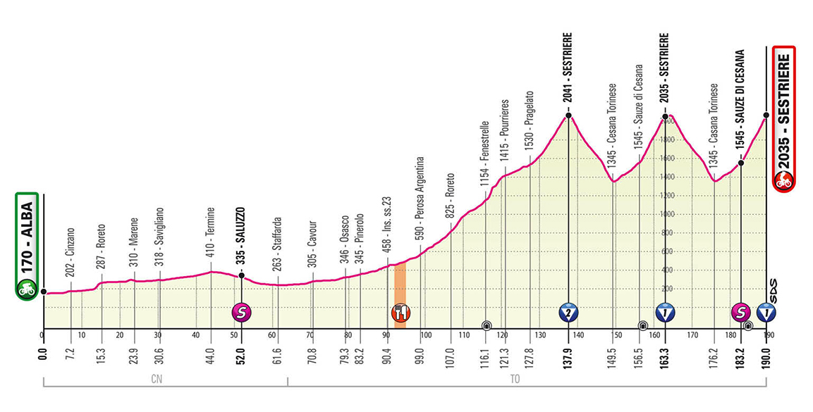 Tracée entre Alba et Sestrières sur une distance de 190 kilomètres, la 20ème étape du Tour d'Italie s'annonce décisive dans l'optique du classement général. Et si le programme a été modifié suite à l'interdiction de se rendre en France, le nouveau tracé est suffisamment copieux au vu des écarts pour que l'on assiste à un beau duel entre la Ineos de Tao Geoghegan Hart d'un côté, et la Sunweb de Kelderman et Hindley.