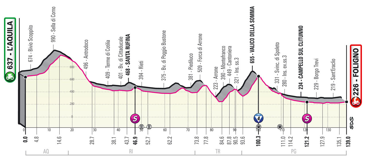 Tracée entre L'Aquila et Foligno sur une distance de seulement 139 kilomètres, la 10ème étape du Tour d'Italie devrait logiquement revenir à un sprinter.