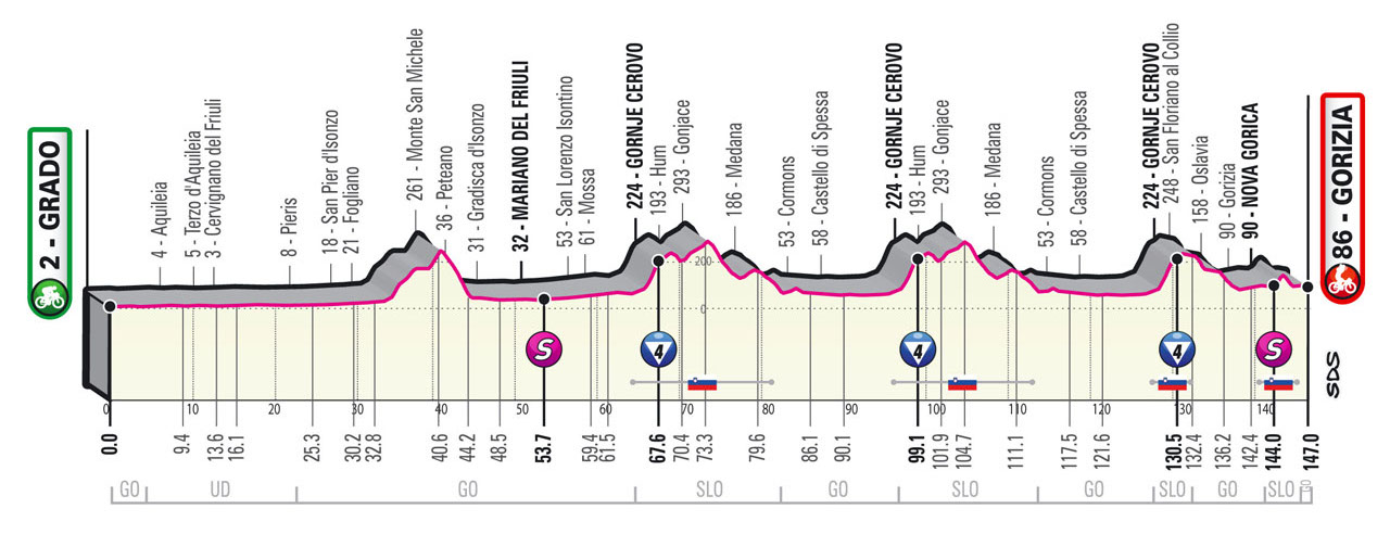 Tracée entre Grado et Gorizia sur une distance de 147 kilomètres, la 15ème étape du Tour d'Italie s'annonce promise aux baroudeurs, à moins que la Bora ne veuille éliminer les purs sprinters et favoriser une nouvelle victoire de Peter Sagan.