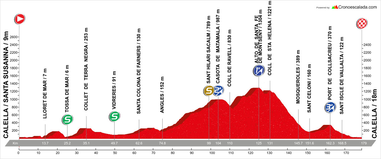 Difficile de lire cette 1ère étape du Tour de Catalogne. Tracée autour de Calella sur une distance de 179 kilomètres, celle-ci présente en effet quelques difficultés, mais pas assez pour donner envie aux grimpeurs de se tirer la bourre. On hésite donc entre un sprint en comité réduit ou la victoire d'une échappée, même si ce second scénario serait étonnant pour un premier jour de course.