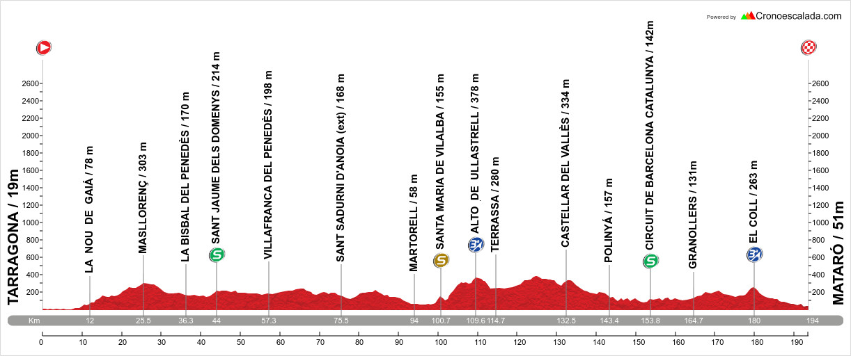 Tracée entre Tarragona et Mataró sur une distance de 193.8 kilomètres, la 6ème étape du Tour de Catalogne devrait permettre une explication entre les rares sprinters présents sur les routes espagnoles. Attention toutefois pour ces derniers, il faudra être en mesure de contrôler la course si ils veulent pouvoir se jouer la victoire dans la dernière ligne droite.