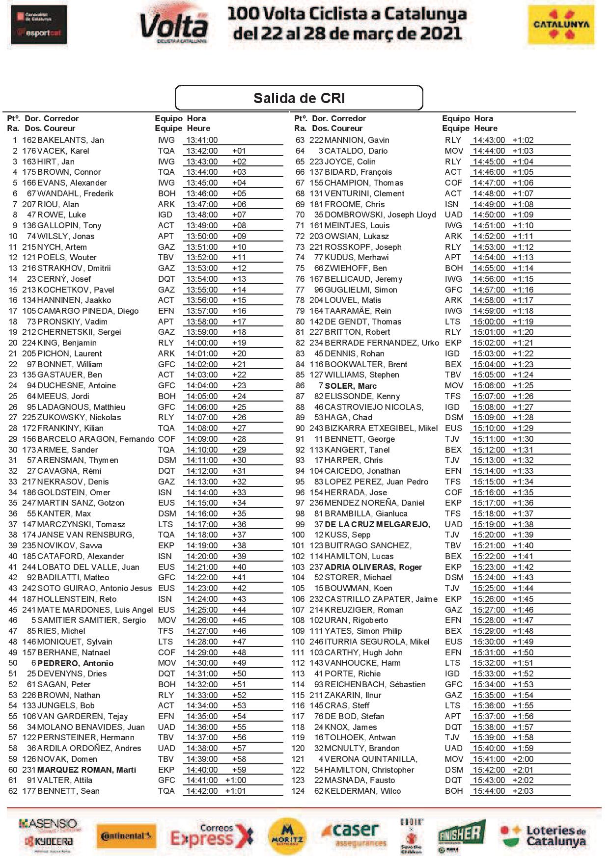 Horaires de départ de la 2ème étape du Tour de Catalogne 2021