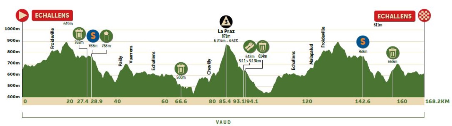 Après une première étape compliquée où de nombreux favoris ont perdu toute chance de bien figurer au classement général, les coureurs du Tour de Romandie ont rendez-vous avec une étape qui s'annonce (sauf chute) plus calme ce jeudi. En effet, le tracé autour d'Echallens ne s'annonce pas insurmontable, et on devrait assister à l'arrivée à un sprint en petit comité.