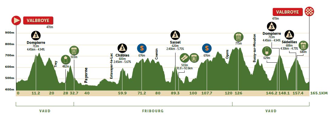 Tracée autour de Valbroye sur une distance de 165 kilomètres, la 3ème étape du Tour de Romandie s'annonce plus ou moins similaire aux deux prédédentes, et c'est un peloton en comité réduit qui devrait logiquement se jouer la gagne dans la dernière ligne droite.