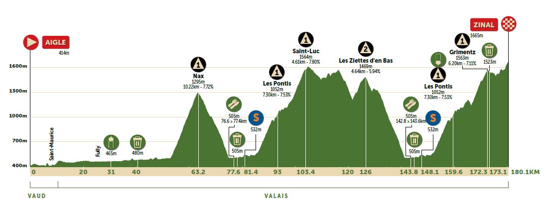 Tracée entre Aigle et Zinal sur une distance de 180 kilomètres, la 4ème étape du Tour de Romandie est considérée à juste titre comme l'étape reine de la course suisse. En effet, après 3 journées un peu ternes, le peloton a rendez-vous avec la montagne ce samedi puisque pas moins de 4 ascensions sont prévues au programme du jour.