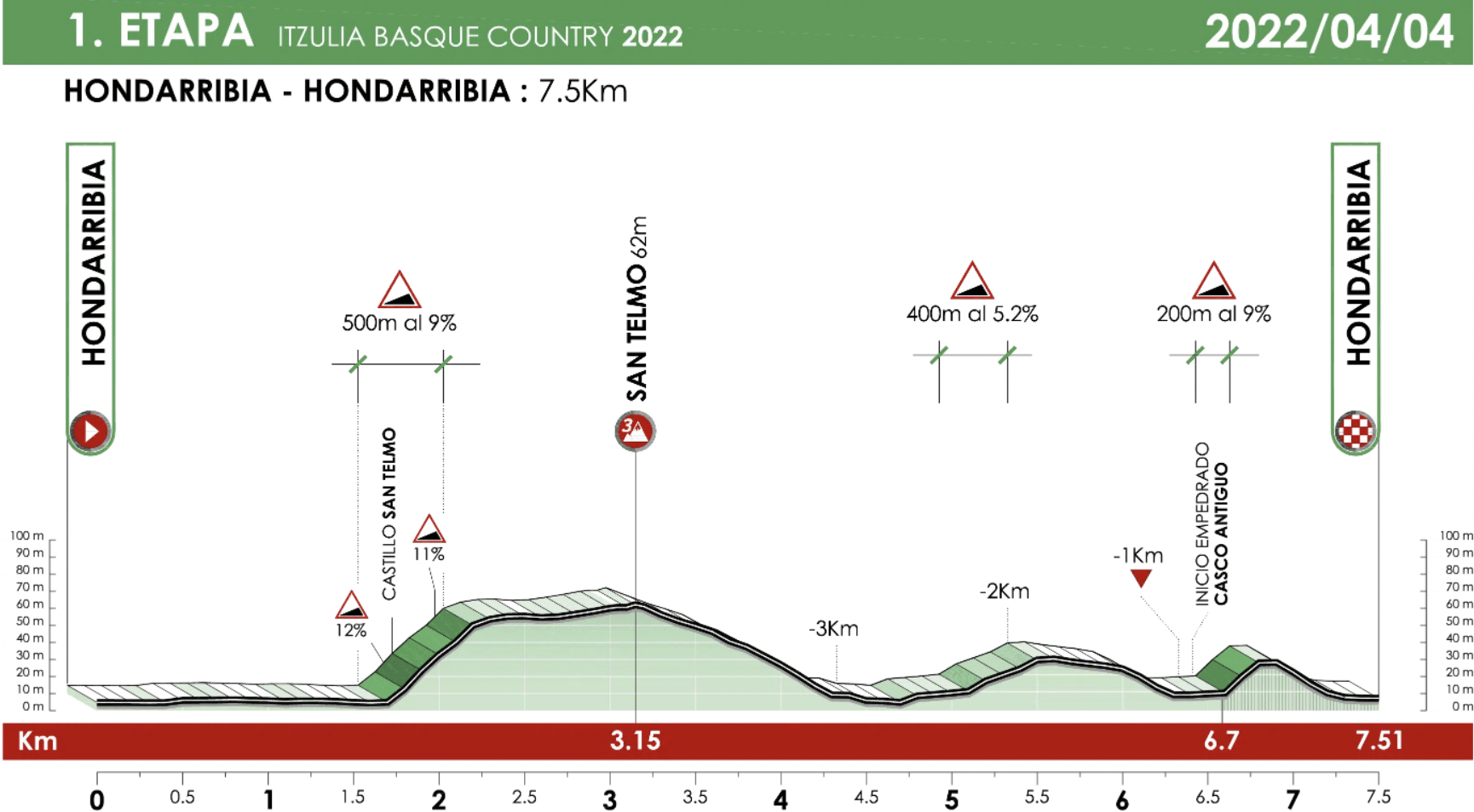 24 heures après le Tour des Flandres, c'est le Tour du Pays Basque qui est désormais à l'honneur à partir de ce lundi. Et au programme de cette première étape, un chrono individuel de 7.5 kilomètres disputé autour d'Hondarribia.